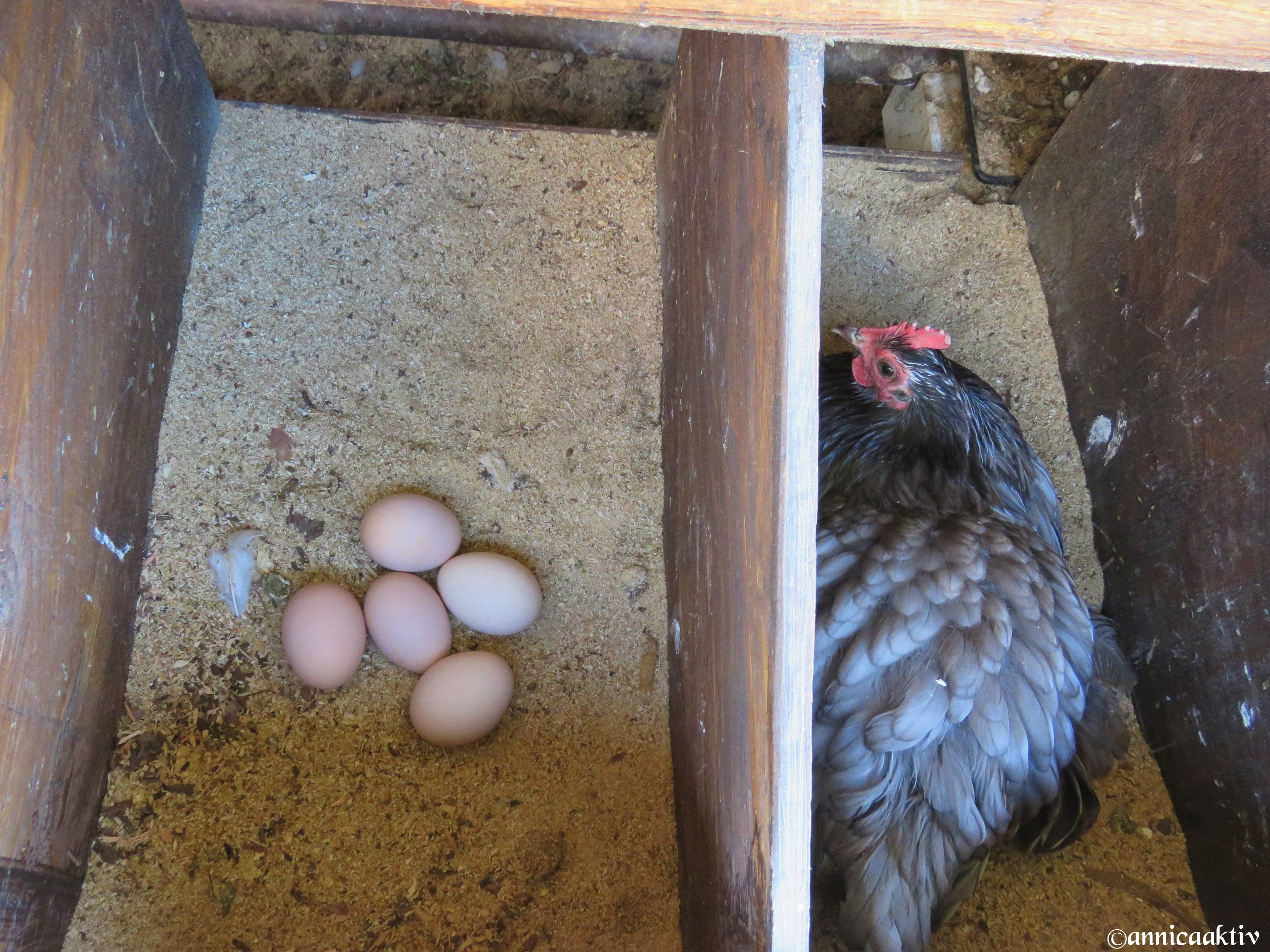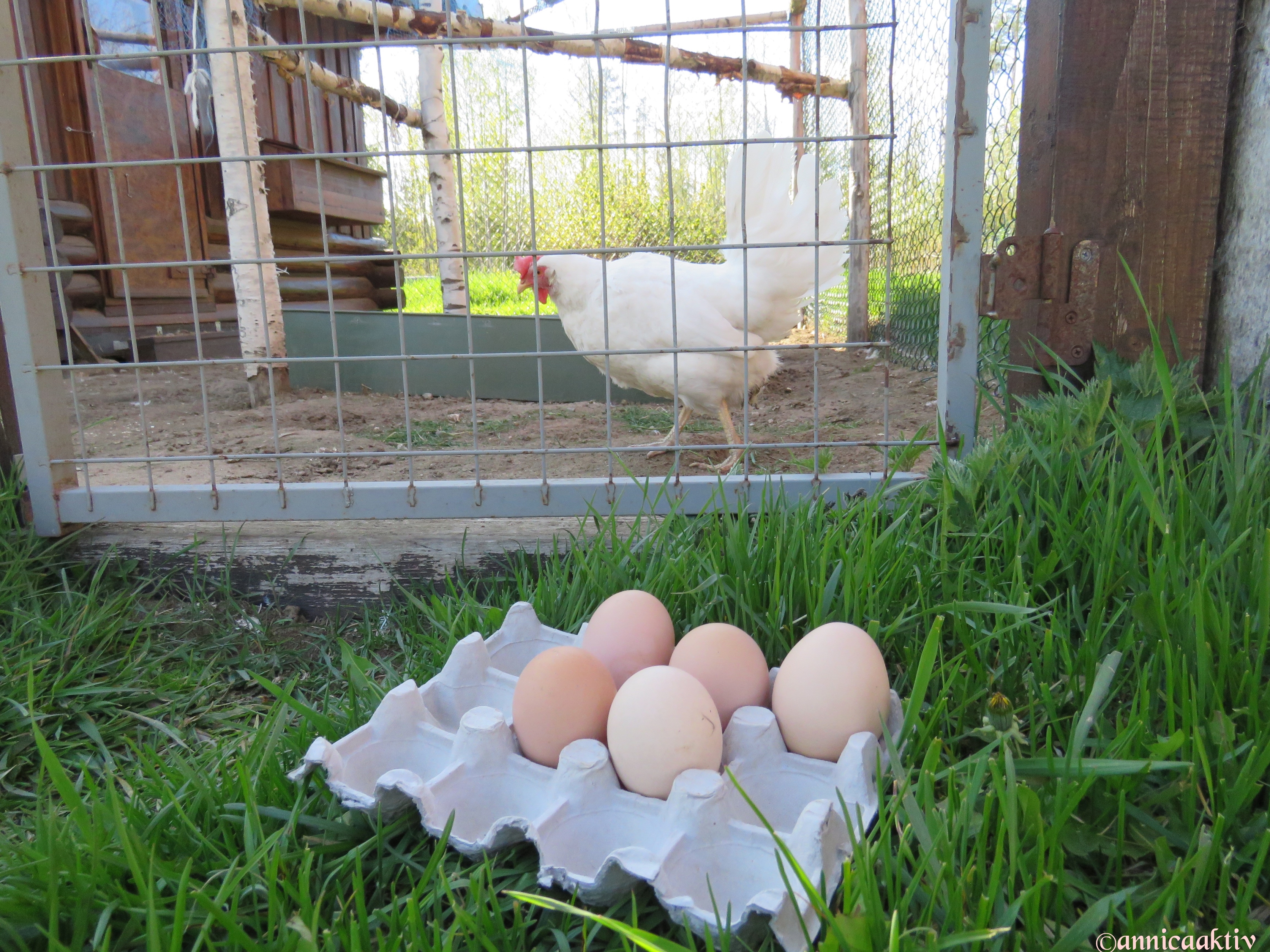 Det är lika roligt varje morgon när jag besöker hönshuset. Jag är välkommen med hönornas prat.  För 9 månader sedan var dom livrädda för mig, när dom kom från en hönsfarm. I dag betedde en höna sig konstigt…och plötsligt lade hon ett ägg framför mina fötter. Jag tror att hon längtade efter god morgon mat och inte kunde vänta haha 😀 Hönorna har värpt ägg under hela vintern. Klicka gärna på bilderna för att göra dem större.